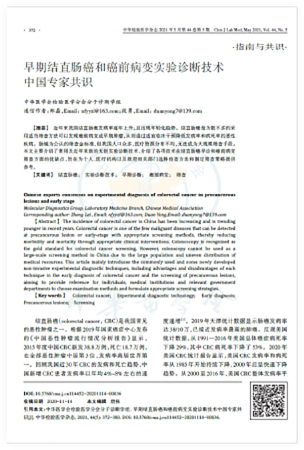 [2]中華檢驗(yàn)醫(yī)學(xué)雜志2021年5月第44卷第5期《早期結(jié)直腸癌和癌前病變實(shí)驗(yàn)診斷技術(shù)中國專家共識(shí)》